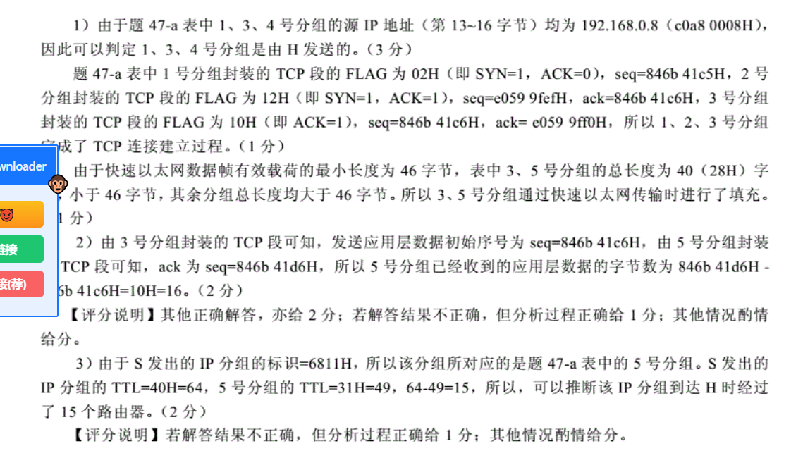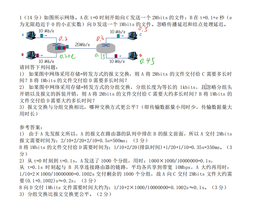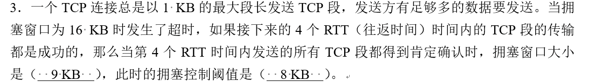 计网考前一天2.17 2012年 1.看ip分组是否小于的是46而不是64 看标识看出是哪个帧 计算问题 此图中不是数据帧会挑最短路,而是因为求最少时间所以按照最短路计算 有笔记 注意KB,拥塞控制阈值 名词 (16,1) 拥塞窗口16KB,不影响发送窗口1KB DF是禁止分片,分片时候DF=0 Cable Modem接入是在混合光纤同轴电缆网(HFC)上实现的宽带接入技术 http://yoursite.com/2023/04/21/计网考前一天2.17/ 作者 Fars 发布于 2023年4月21日 许可协议 上一篇 下一篇